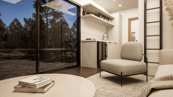 | Construction | Frame: Welded W8 Steel frame, Wall Framing: 2×4 Cold Formed Steel, Insulation: 2lb Spray foam, Cladding: Metal cladding, Roofing: Standing Seam metal, HVAC: Electric Air Source heat pump with ERV, Electrical: 100A Electrical Panel, Plumbing: 30 gallon High Efficiency HWT |